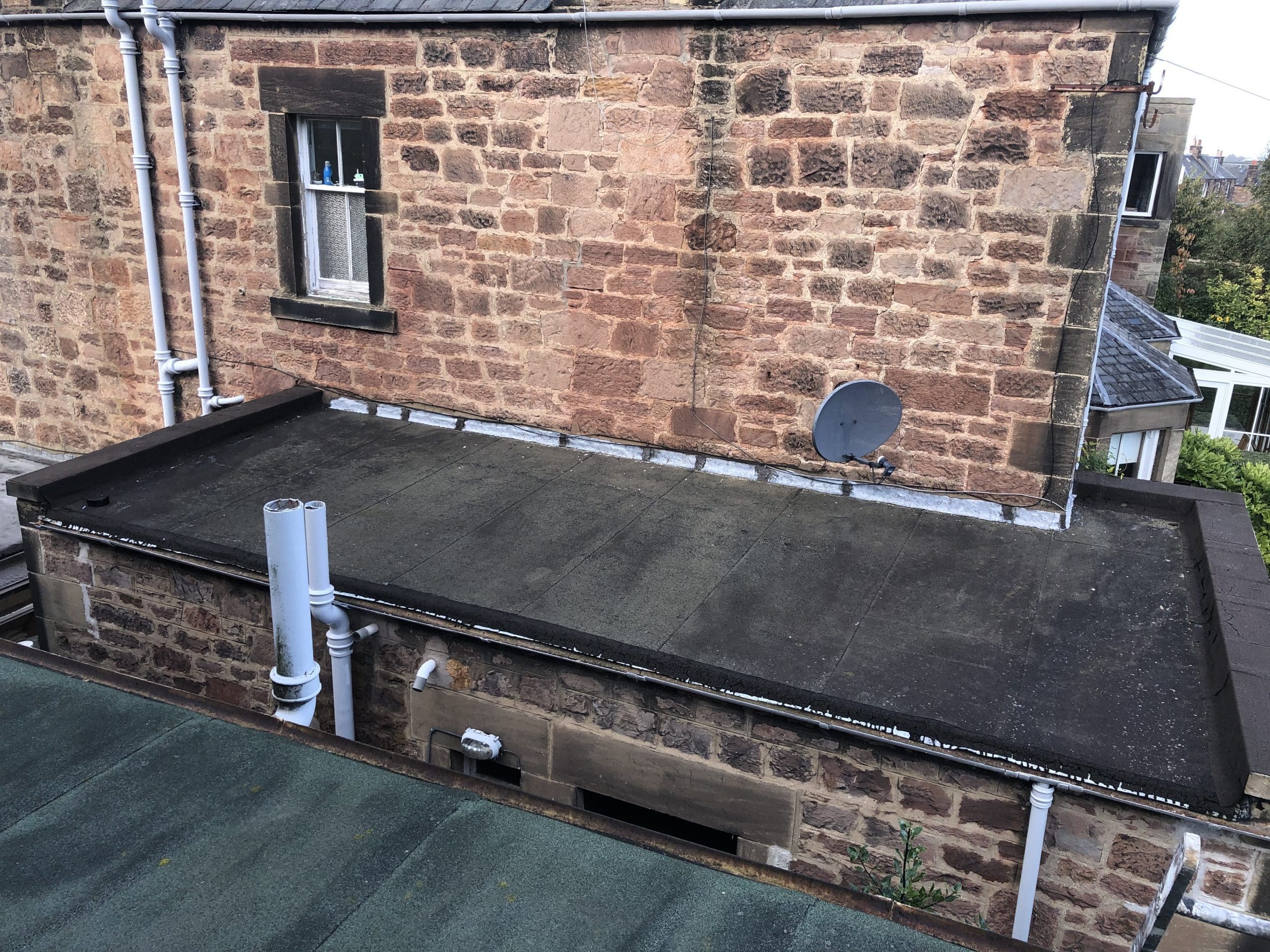 This is a failing garage roof which was replaced to a new torch on 3-layered felting system including a code 5 lead cover flashing
